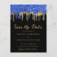 Elegant Blue Gold Glitter Drips Save The Date Postcard