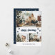 Custom blue photo happy howlidays cards featuring a photo collage and paw prints on the front and a blue background with gold stars at the back. Easily personalise these elegant blue photo Christmas cards with your images, a family name and the year. More colour options available. Easily personalise to any colour.