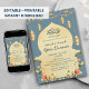 Elegant Blue Gold Lanterns & Floral Arch Iftar Invitation