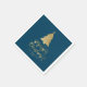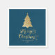 Elegant Christmas Paper Napkins featuring a Faux Gold Foil Christmas Tree on a blue background with happy sparkly faux gold typography "Merry Christmas" and a Personalised name and date which you can change or delete from the menu. An elegant and beautiful way to decorate your home with this holiday season.