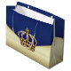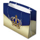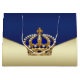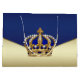 Prince baby shower gift bag with beautiful royal blue and golf crown on an elegant royal blue and gold background. This prince or king gift bag is easily customised for your event by adding text. You can also move and resize the crown as needed.