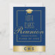 Send your 10th class reunion classmates our modern flat card invitation. This elegant design template features a blue and shiny gold border background with faux gold typography that reads "10th Class Reunion" with your school name and year to personalise Below is your school's monogram. The back of the card has more of your celebration details for you to customise. Designed by ©Tim Coffey and