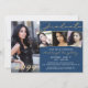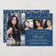 Modern graduation party invitation featuring 4 photos and elegant gold handwritten script typography in your choice of background colour (shown in blue). Make design changes in EDIT. ASSISTANCE: For help with design modification/personalisation, transferring the design to another product, or you'd like coordinating items, contact the designer BEFORE ORDERING via Zazzle Chat or makeitaboutyoustore@gmail.com.