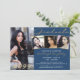 Elegant Blue Gold Script 4 Photo Graduate Invitation