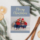Personalized Elegant Blue Gold Script Christmas One Photo Foil Holiday Card.