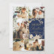 Elegant Blue Gold Script Multi Photo Christmas Holiday Card