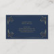 An elegant blue and gold business card with a scroll design around the edges on the front and back. Add your details to the front and back. Suitable for many businesses.