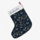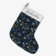 Elegant Blue Gold Silver Botanical Pattern Large Christmas Stocking