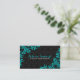 Elegant blue-green floral lace swirls over black floral damasks pattern, business card template. For Event designers, wedding planners