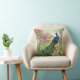 Elegant Blue Green Peacock Pink Flowers Forest Cushion