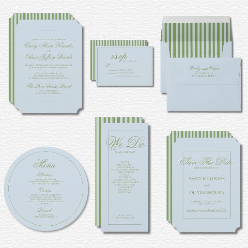 Elegant Watercolor Green Blue Stripe WeddingDesigned by Heather Davis