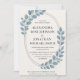 Elegant Blue Greenery & Silver Oval Modern Invitation
