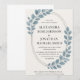 Celebrate your special day with this elegant wedding invitation featuring concentric silver oval rings and soft blue botanical leaves. A perfect blend of modern minimalism and timeless romance, this design frames your wedding details in style. Ideal for garden weddings, rustic celebrations, or chic modern events, this customisable template lets you easily edit names, dates, and venue details. Printed on premium paper with vibrant detail, this wedding invite adds a sophisticated touch to your celebration.