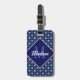 Elegant blue initial monogram Luggage Tag. Toile prints are an all time rage at the moment, this is an elegant and ornate vintage toile de jouy featuring a beautiful pattern, a fun style that is currently trending for home decor, clothes, mobile and Ipad cases, invitations and much more. The design is classic and timeless with stunning colour. You can change all text colours and fonts, click to customise further underneath the text customisation area this will take you into the design tool. A unique girly gift for birthday, holidays and any special occasion. Whether for valentines day, Christmas or as a gift in general it makes a great gift idea