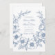Elegant Blue Hand Drawn Wreath In Bloom Wedding Invitation