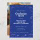 Elegant royal blue mathematics graduation photo invitation with a pattern of math formulas and equations. Add the graduate photo at the back of the invitation for a more personalised invite. Illustrated and designed by Patricia Alvarez.
