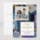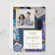 Elegant Blue Happy Hanukkah Family 1 Photo Holiday Card