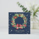 Elegant Blue Holly Berries Pine Wreath Photo Holiday Card