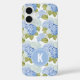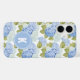 Elegant Blue Hydragea Flowers Pattern Monogram Case-Mate iPhone Case