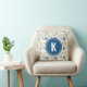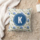 Elegant Blue Hydragea Flowers Pattern Monogram Cushion