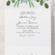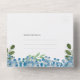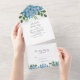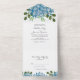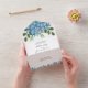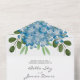 Elegant design features blue hydrangeas, foliage and greenery. Fully customisable, click to Customise Further to change font style, size and or colour.