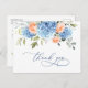Elegant Blue Hydrangea Blush Pink Roses Thank You Postcard