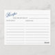 Elegant Blue Hydrangea Bridal Shower Recipe Card