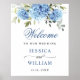 Elegant Blue Hydrangea Eucalyptus Wedding Welcome Poster