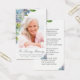 This elegant custom floral in loving memory memorial funeral photo card features a photo on the front bordered with hand painted watercolor blue hydrangea flowers on white. Below in grey script are the words "In Loving Memory" with a name and dates to personalise. The back of the card has a poem which may be kept as is or customised. Designed and poem written by Susan Coffey.