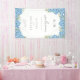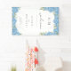 Modern elegant wedding welcome banner featuring blue hydrangea watercolor floral design.
