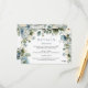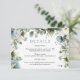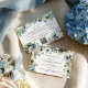 This wedding details card pairs timeless botanical charm with a soft, romantic colour palette of ivory, dusty blue, and sage green. Adorned with painted watercolor florals including white ranunculus, blue hydrangeas, and soft greenery, it provides a graceful way to share important reception and accommodation information. Ideal for garden weddings, vineyard ceremonies, or destination celebrations with a modern romantic vibe. Pairs seamlessly with the matching invitation suite.