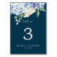 This elegant blue hydrangea navy table number is perfect for a spring or summer wedding. The classic floral design features soft powder blue watercolor hydrangeas accented with neutral blush pink flowers and green leaves. The card prints on the front and back (double-sided). Items are printed exactly as they appear on your screen when you add to cart, so personalise and add each table number that you need to your cart individually.
