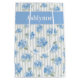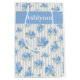 Elegant Blue Hydrangea Pattern Gray Stripe Name Medium Gift Bag