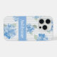 Elegant Blue Hydrangea Pattern Grey Stripe Name iPhone Case