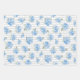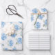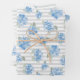 Elegant Blue Hydrangea Pattern Grey Stripe Wrapping Paper Sheet