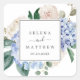 These elegant blue hydrangea wedding envelope seals are perfect for a spring or summer wedding. The classic floral design features soft powder blue watercolor hydrangeas accented with neutral blush pink flowers and green leaves. Personalise the label with the names of the bride and groom.