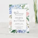 This elegant blue hydrangea white folded wedding program is perfect for a spring or summer wedding. The classic floral design features soft powder blue watercolor hydrangeas accented with neutral blush pink flowers and green leaves.