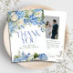 Elegant Blue Hydrangea White Roses Floral Wedding Thank You Card