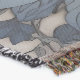 A quality printed throw has its advantages. This is a much finer weave throw than its loopier cousins, and though lighter, it is worth the investment for custom room accessorizing. The back is much prettier than the typical brown, and the fringe on the long sides very vivid, the selvage nicely done. Before photographing, I washed the throw in cold water, delicate, with a thicker woven throw the same size. On tumble dry low, this throw was dry in half the time as the other. This is a very practical quality if you use throws for furniture covers or to wrap up in frequently. The sleekness of the fabric makes it a great layer for accenting or protecting without the feeling of sitting on too much stuff. Perfect for napping or when you feel a light chill coming on. The color printing is beautiful and on this fabric, matched the design and color of my Photoshop image. This is an advantage for blending room fabrics and colors. The fringe on the short sides prints the colors from the design image and therefore varies from the side fringe. I streaked a white fractal line through the plaid pattern to give the illusion of weaving. This printed as crisp as an illusory thread, and put some white in the short side fringe, showing another advantage of print vs loomed- for artistic purposes, line lines, detail, and color integrity can be planned and preserved. My loomed throws have color limitations and more of a needlepoint texture. Print throws reproduce an exact image. The throw felt a little stiff straight out of the package, but this went away in the first delicate wash. Of course I searched the wash water for ink or bleeding and there was none.