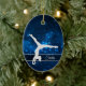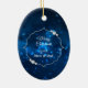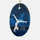 This elegant ornament features a silver silhouette gymnast during a handstand against a pretty blue background with tiny star lights. Her name is in silver on a semi transparent banner that is framed in white faux glitter. The back of the ornament has the same blue background with three custom text fields at the center of a fancy faux diamond framed banner. Perfect for that daughter, granddaughter, or niece who is a gymnast.