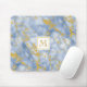 Elegant Blue Marble Monogram Faux Gold Glitter Mouse Pad