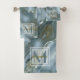 Elegant Blue Marble Natural Stone Pattern Monogram Bath Towel Set