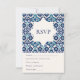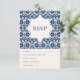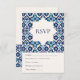 Elegant Blue Mediterranean Tile Wedding RSVP Card