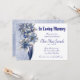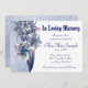 Beautiful royal navy blue with baby blue flowers and swirls personalised funeral and memorial announcement and invitation template. This beautiful blue memorial and funeral announcement is easily customised for your event by simply choosing the "Customise it!" button to begin adding your event details, font style, font size & colour, and wording. Please note - all of the stickers, cards and invitation designs you will find on Zazzle are printed graphics with no actual jewels, bows, raised, embossed, or added parts or pieces.