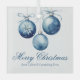 This elegant Merry Christmas ornament features chic blue cursive script next to a beautiful watercolor drawing of holiday ornaments with a bow. Customise these elegant business holiday gifts for clients or friends and family within your company.