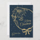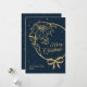 A beautiful Christmas Holiday flat Greeting Card in blue. This lovely elegant design features a gold script font, poinsettia, and bow. Easy to personalize with your family name, year, and custom message on back of card.