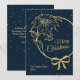 Elegant Blue Merry Christmas Poinsettia Flat Holiday Card