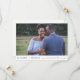 A simple elegant save the date card to announce you have set a wedding date. The card features your favourite photo with your names, wedding date and location in a modern blue typography. The reverse is white with your initials in a blue font.