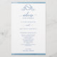 Elegant blue Wedding program featuring delicate hand drawn botanical monogram with couples initials and framed by beautiful blue watercolor stripes. Ability to make text changes and adjustments by selecting customise further. Front with wedding ceremony details, back with wedding party names and thank you message for your guests. Elegant, simple and graceful feel. Initials in elegant modern block typography. Same design with initials in classic calligraphy also available. Part of our "Blue Watercolor Botanical Monogram Wedding" Collection with a variety of coordinating products available, including menu, table seating chart cards, table numbers and thank you cards. Visit the entire collection with this link: https://www.zazzle.com/collections/blue_watercolor_botanical_monogram_wedding-119923294821263262
