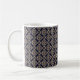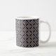 This is a stylish ceramic mug featuring a deep blue background adorned with an intricate white geometric pattern. The design is both elegant and timeless, making it perfect for everyday use or as a decorative piece. Its sturdy handle and smooth finish ensure comfort and durability, ideal for enjoying your favourite hot or cold beverages.